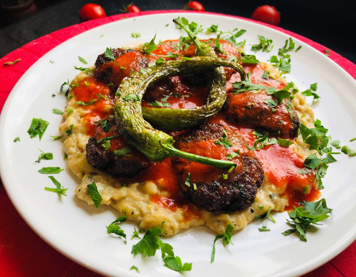 Sürekli aynı tarz akşam yemeği yapmaktan ve yemekten sıkılanlar için çok güzel bir tarifim var. İki aşamalı ama çok uzun sürmüyor  size verdiğim taktiklerle göz açıp kapayıncaya kadar kendinizi yemeği yerken bulacaksınız. Patlıcanları közleyip köfteyi yoğurduğunuzda iş bitmiş olacak! Gerisi çok daha eğlenceli.  Yaptıktan sonra tadına bayılacak ilk davet sofranıza da yapmak isteyeceksiniz. (videolu tarifi için tıklayın)