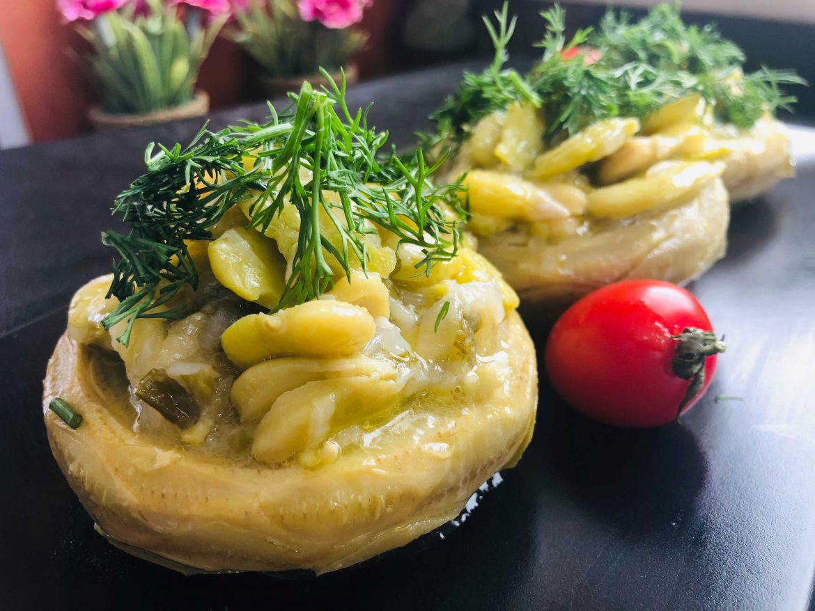 - Baklalar kavrulunca enginarları üzerine ters kapatın. Üzerine limon suyu ve 1 çay bardağı kadar su ilavesi yaparak tencerenin kapağını kapatın.
