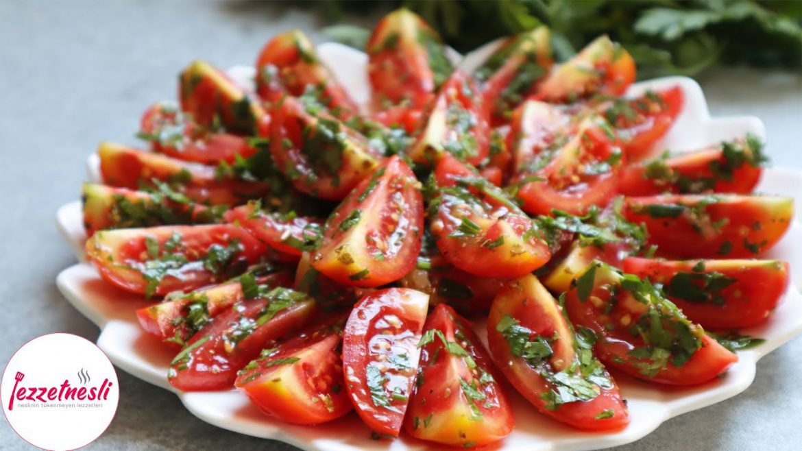 kullanacaksanız her birini uzunlamasına dörde bölerek çukur bir kasenin içerisine alın. Büyük domateslerden kullanacaksanız kabuklarını soyup iri söğüşlük doğrayabilirsiniz. Domateslerin üzerine inci kıydığınız maydanozları ve sırasıyla tuz, şeker, karabiber, kekik, sirke ve zeytinyağını ekleyip domatesleri hırpalamadan karıştırın. Üzerini kapak veya streç filmle kapatıp buzdolabında en az 1 saat dinlendirdikten sonra servis yapın. İster tek başına ister ana yemeğin yanına içinizi serinletecek nefis bir soğuk mevsim salatası. Yaptıktan sonraki yorumlarınızı mutlaka bekliyorum.Afiyet bal şeker olsun..